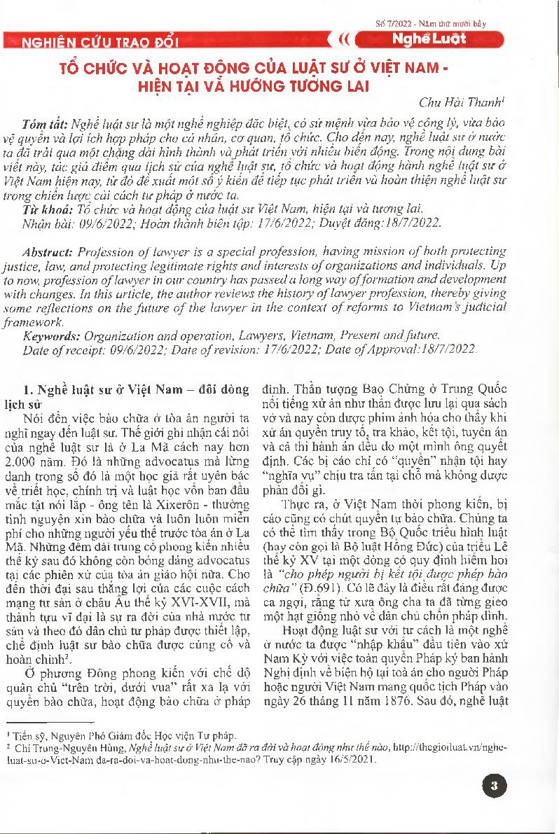 Tổ chức và hoạt động của luật sư ở Việt Nam- Hiện tại và hướng tương lai