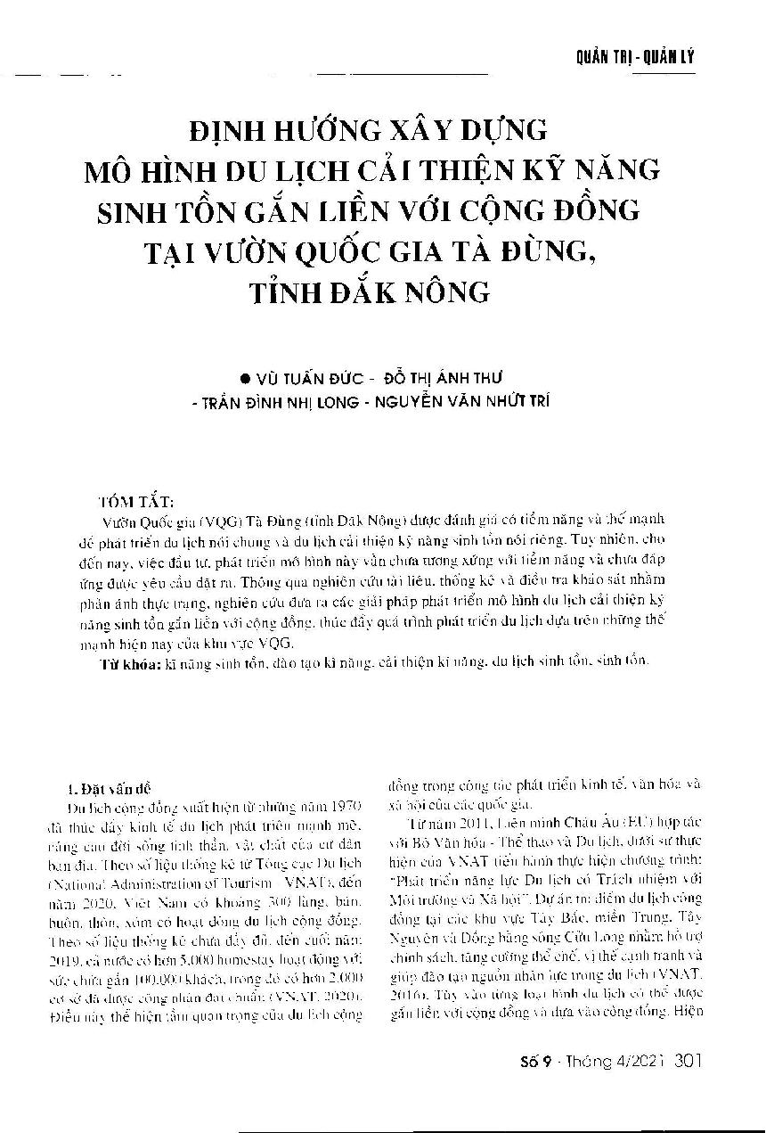 Định hướng xây dựng mô hình du lịch cải thiện kĩ năng sinh tồn gắn liền với cộng đồng tại vườn quốc gia Tà Đùng, tỉnh Đắk Nông