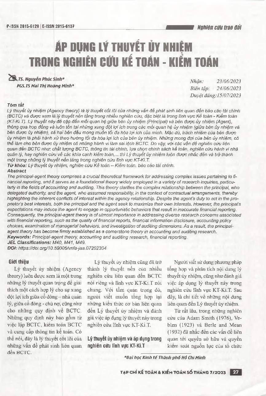 Áp dụng Lý thuyết ủy nhiệm trong nghiên cứu kế toán – kiểm toán