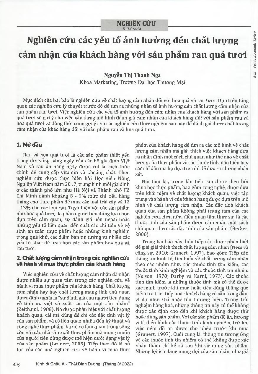 Nghiên cứu các yếu tố ảnh hưởng đến chất lượng cảm nhận của khách hàng với sản phẩm rau quả tươi