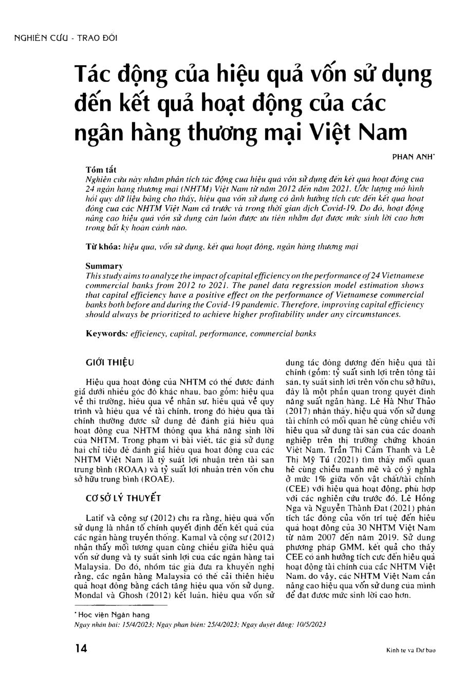 Tác động của hiệu quả vận dụng đến kết quả hoạt động của các ngân hàng thương mại Việt Nam