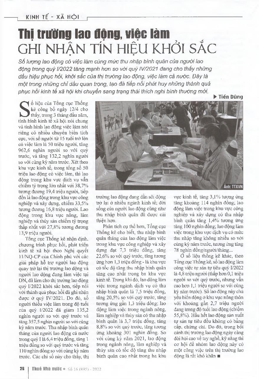 Thị trường lao động, việc làm: ghi nhận tín hiệu khởi sắc = Labor and employment market: positive signal has been recorded