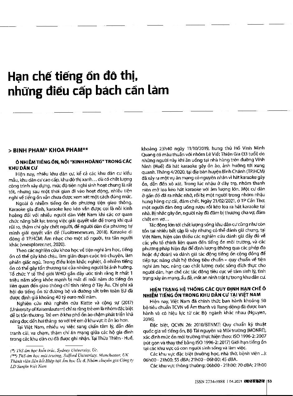 Hạn chế tiếng ồn đô thị, những điều cấp bách cần làm