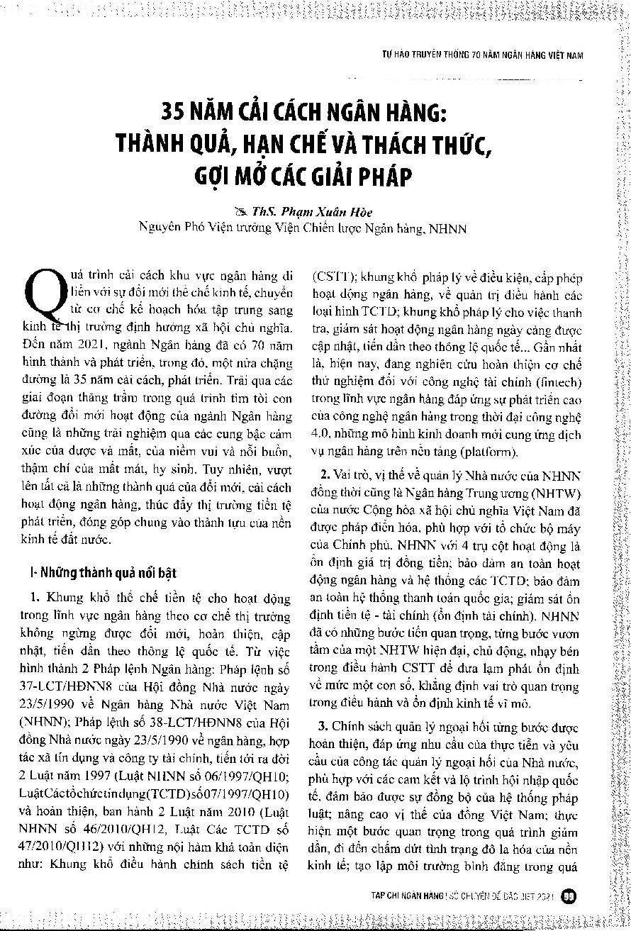35 năm cải cách Ngân hàng: Thành quả, hạn chế và thách thức, gợi mở các giải pháp