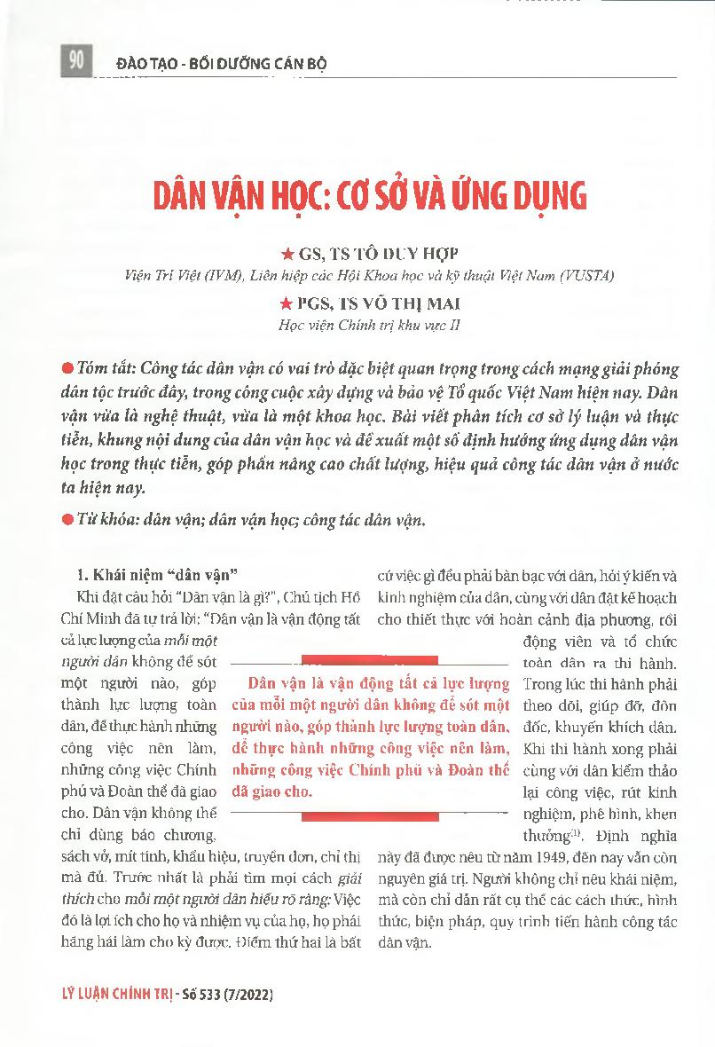 Dân vận học: cơ sở và ứng dụng = Mass mobilization studies: Foundation and application