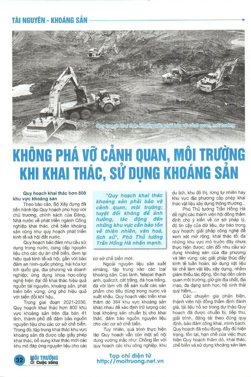 Không phá vỡ cảnh quan, môi trường khi khai thác, sử dụng khoáng sản = Do not disrupt the landscape and environment when exploiting and using minerals