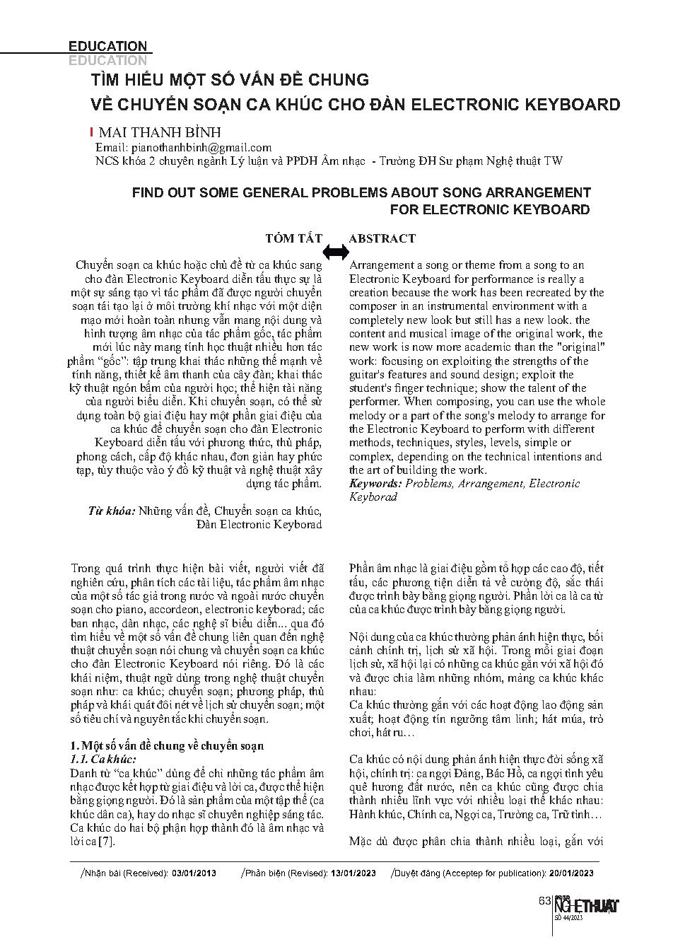 Tìm hiểu một số vấn đề chung về chuyển soạn ca khúc cho đàn Electronic Keyboard
