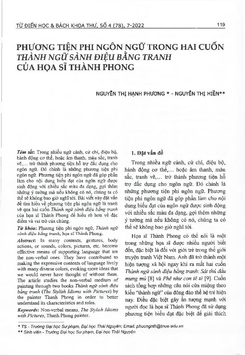 Phương tiện phi ngôn ngữ trong hai cuốn Thành ngữ sành điệu bằng tranh của họa sĩ Thành Phong = The non-verbal means in two books Thành ngữ sành điệu bằng tranh by the painter Thanh Phong