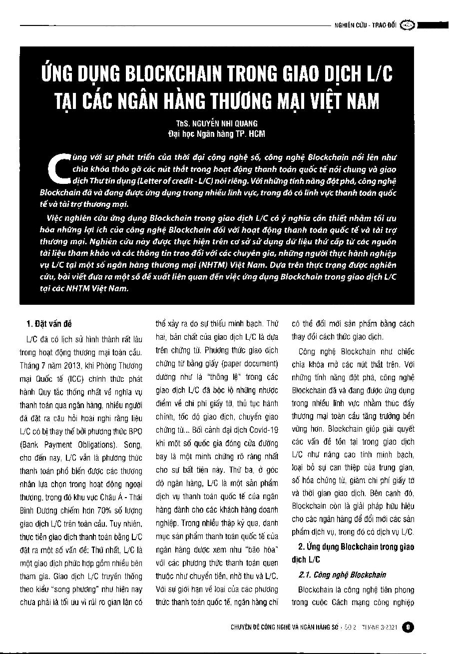 Ứng dụng Blockchain trong giao dịch l/c tại các ngân hàng thương mại Việt Nam