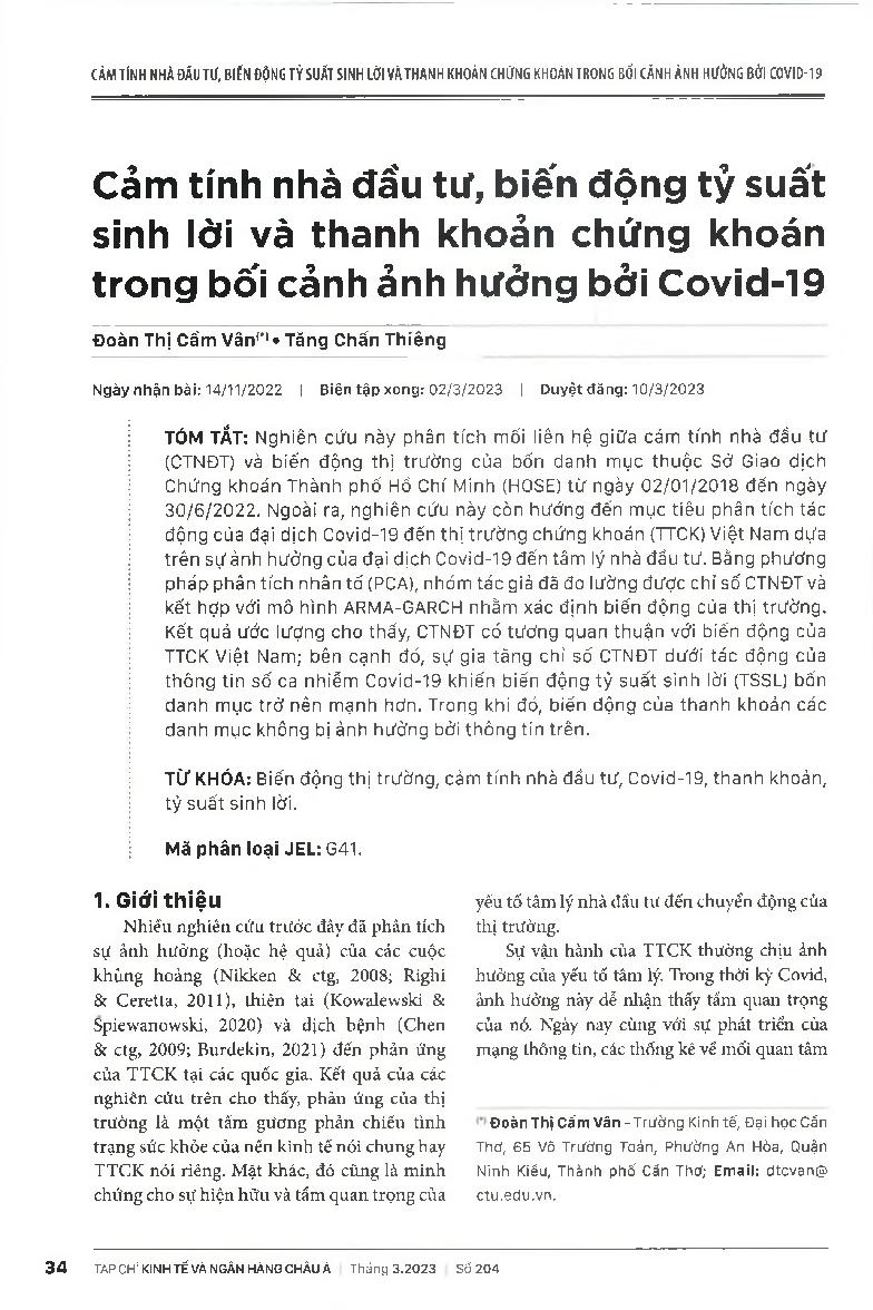 Cảm tính nhà đầu tư, biến động tỷ suất sinh lời và thanh khoản chứng khoán trong bối cảnh ảnh hưởng bởi Covid-19 = Investor sentiment, Volatility in Stock Returns, and Liquidity in the Context of the Covid-19 Pandemic