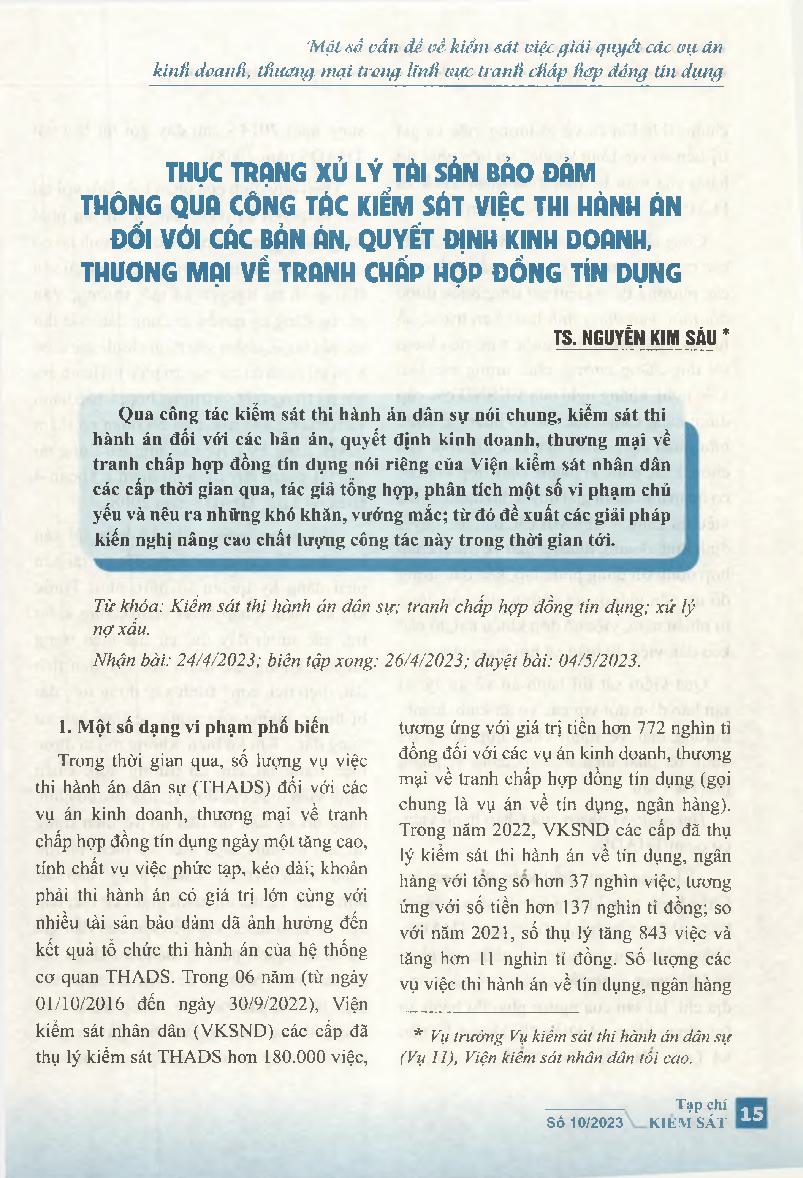 Thực trạng xử lý tài sản bảo đảm thông qua công tác kiểm sát việc thi hành án đối với các bản án, quyết định kinh doanh, thương mại về tranh chấp hợp đồng tín dụng