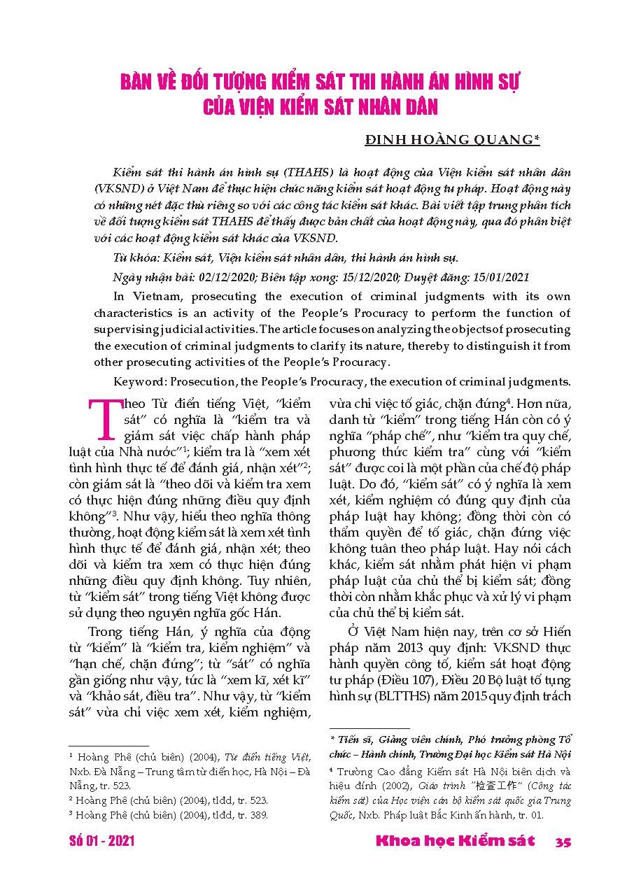 Bàn về đối tượng kiểm sát thi hành án hình sự của Viện kiểm sát nhân dân = Discussing the object of the People's Procuracy of the Procuracy of the People's Procuracy