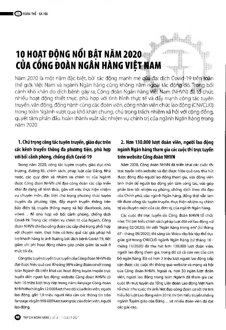 10 hoạt động nổi bật năm 2020 của Công đoàn Ngân hàng Việt Nam