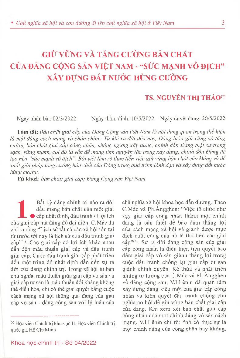 Giữ vững và tăng cường bản chất của Đảng Cộng sản Việt Nam - “sức mạnh vô địch” xây dựng đất nước hùng cường = Maintain and strengthen the essence of the Communist Party of Vietnam - the "invincible power" to build a strong country