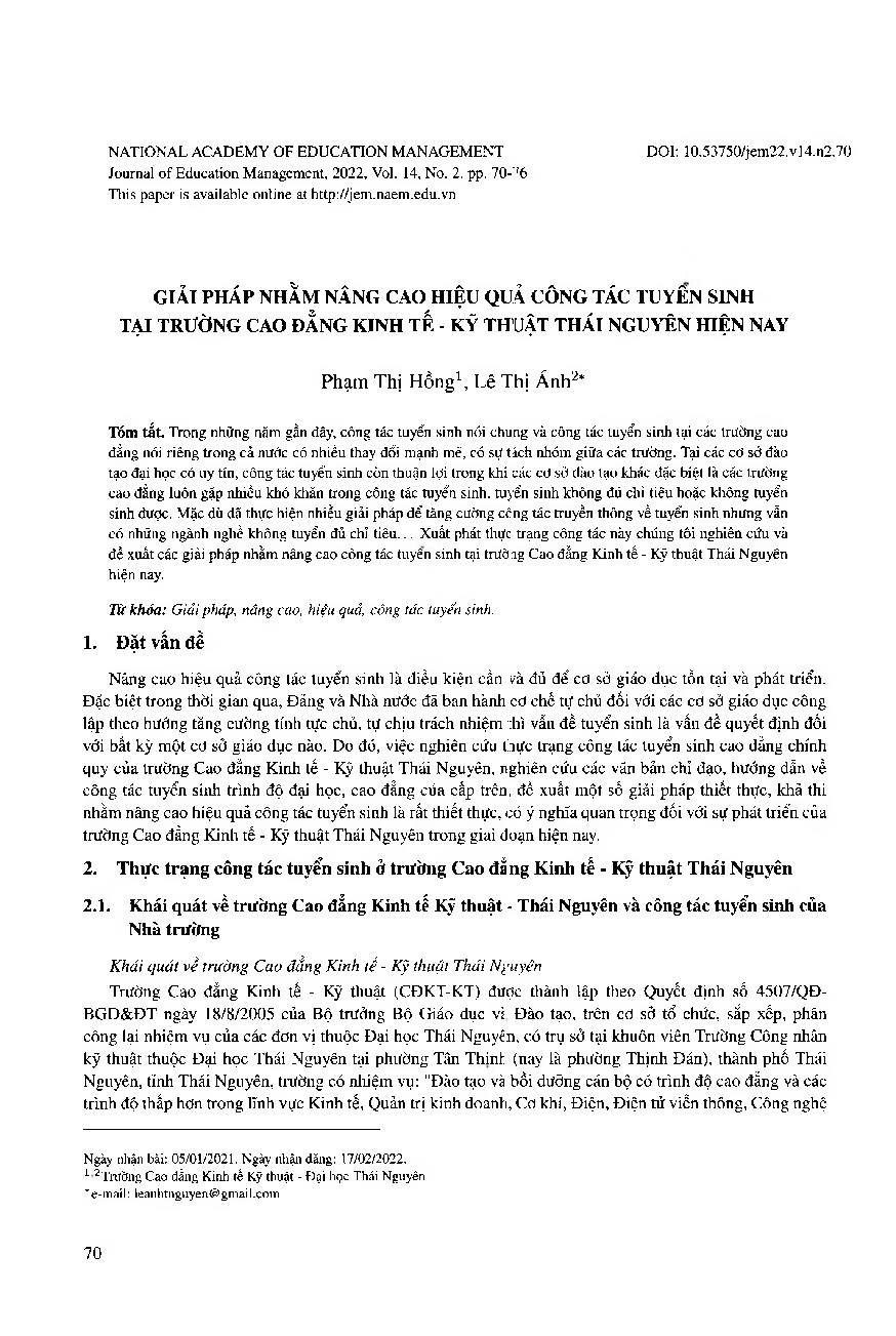Tác giả: Tran Thi Thuy Huong; Trinh Hoai Thu; Nguyen Van Hoa;