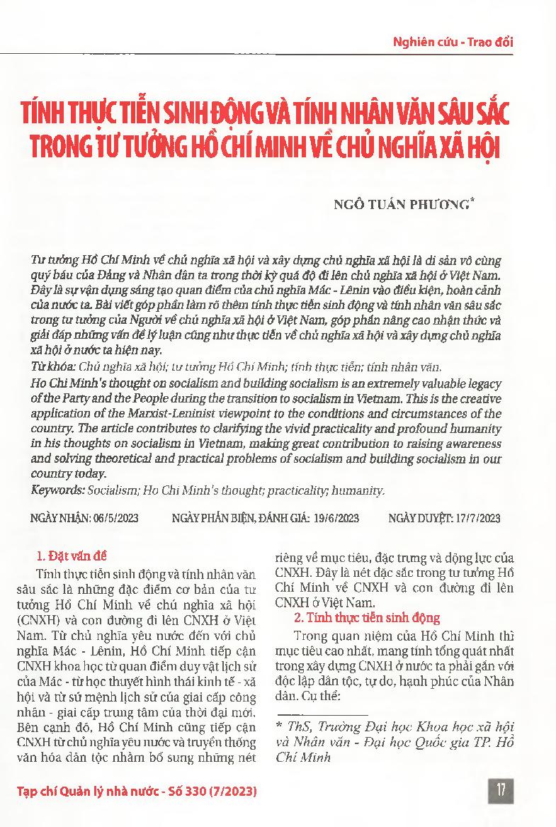 Tính thực tiễn sinh động và tính nhân văn sâu sắc trong tư tưởng Hồ Chí Minh về chủ nghĩa xã hội = Vivid practicality and profound humanity in Ho Chi Minh's thought on socialism