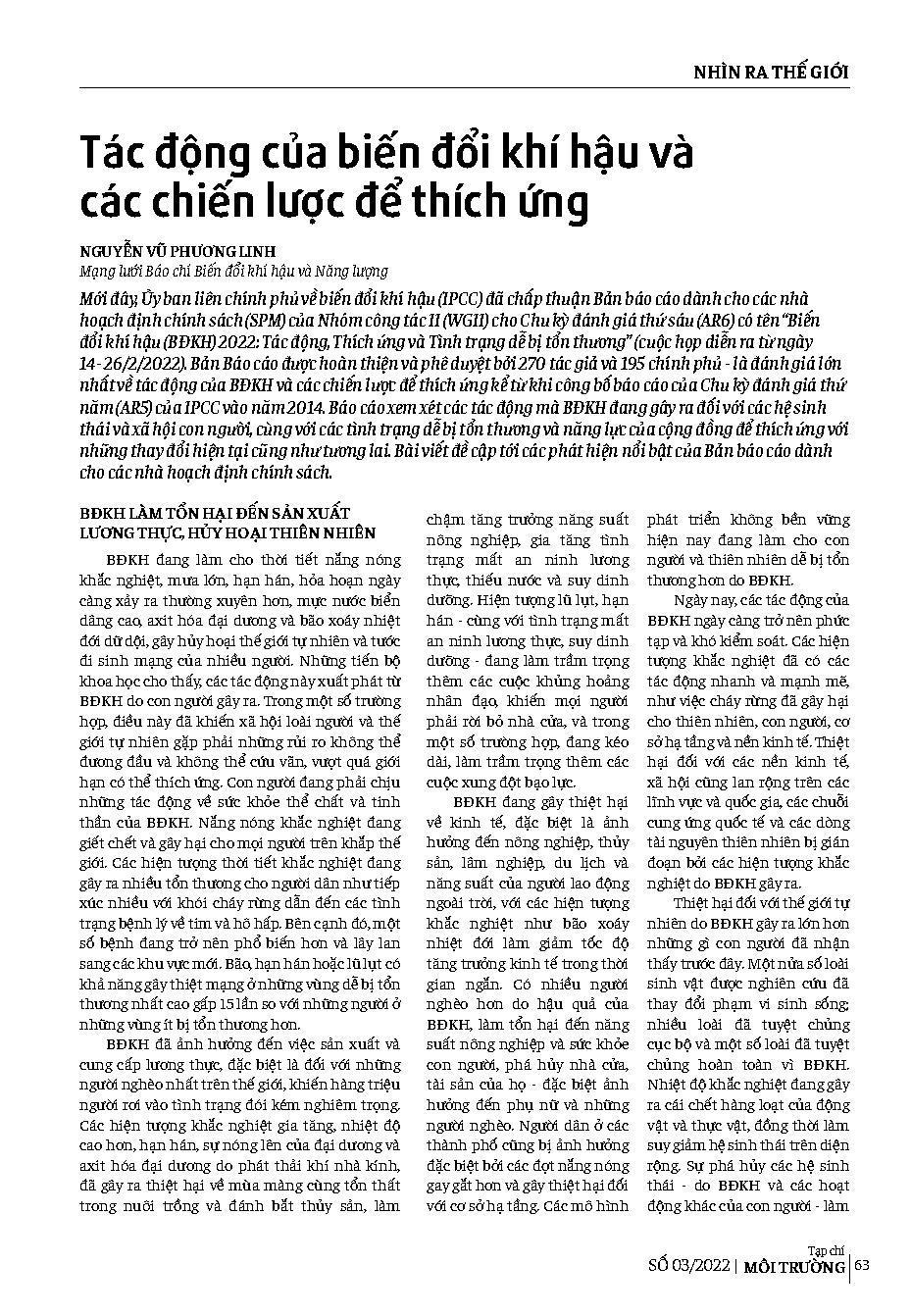 Tác động của biến đổi khí hậu và các chiến lược để thích ứng