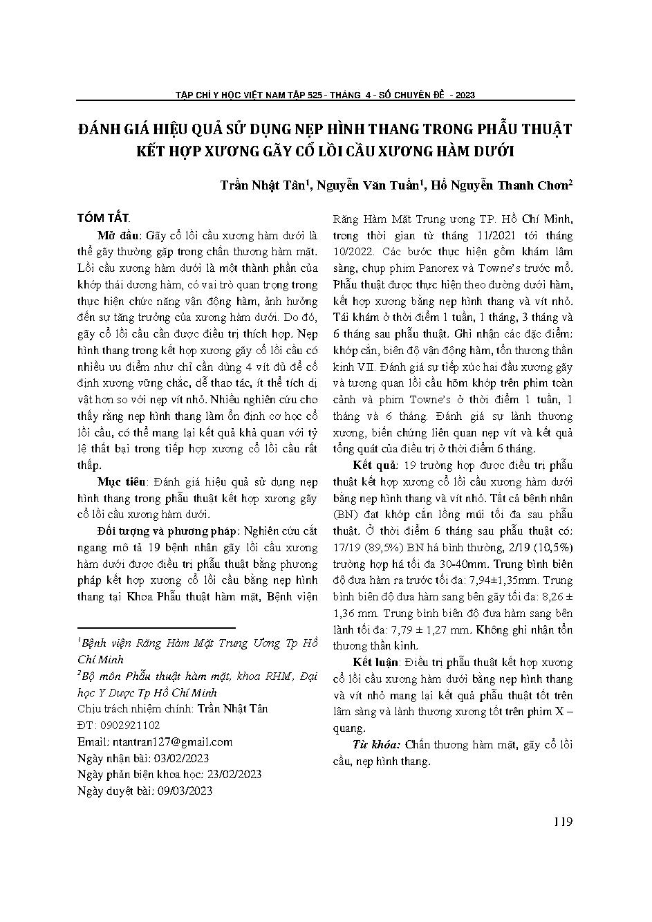 Đánh giá hiệu quả sử dụng nẹp hình thang trong phẫu thuật kết hợp xương gãy cổ lồi cầu xương hàm dướ