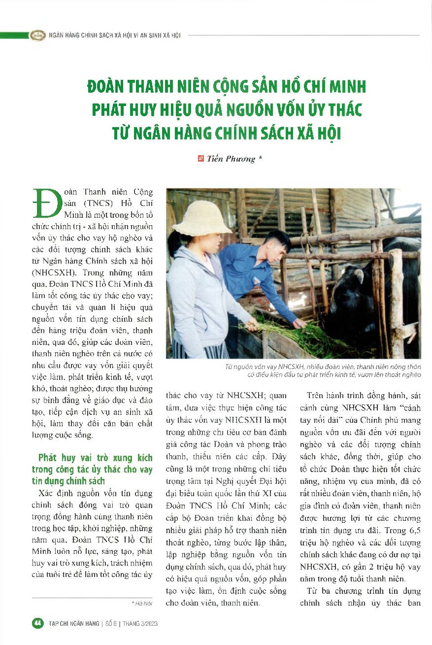 Đoàn Thanh niên Cộng sản Hồ Chí Minh phát huy hiệu quả nguồn vốn ủy thác từ Ngân hàng Chính sách xã hội = Ho Chi Minh Communist Youth Union improves the trust capital sources efficiency from the Vietnam Bank for Social policies