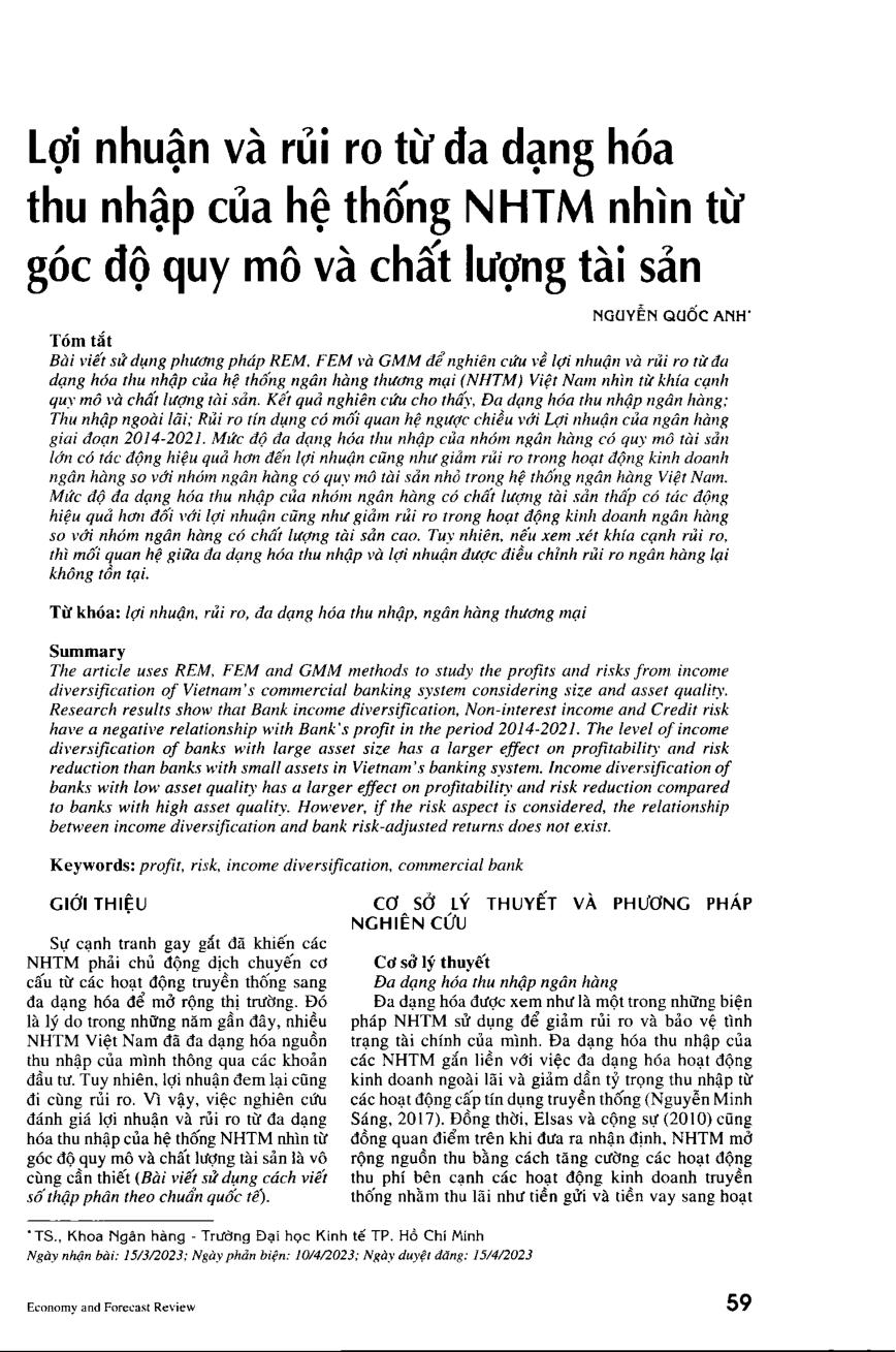 Lợi nhuận và rủi ro từ đa dạng hóa thu nhập của hệ thống NHTM nhìn từ góc độ quy mô và chất lượng tài sản