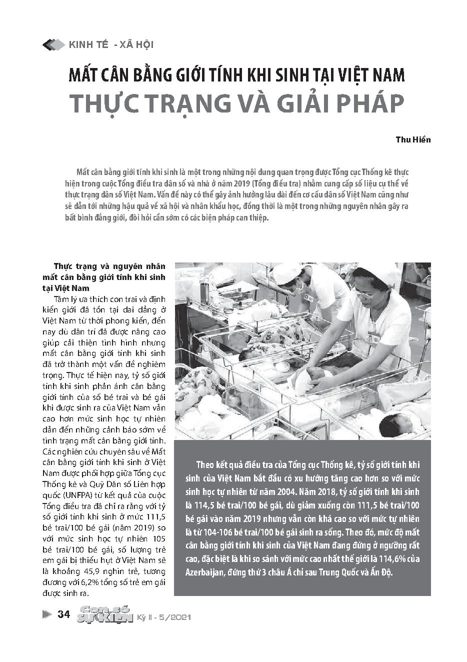 Mất cân bằng giới tính khi sinh tại Việt Nam: Thực trạng và giải pháp