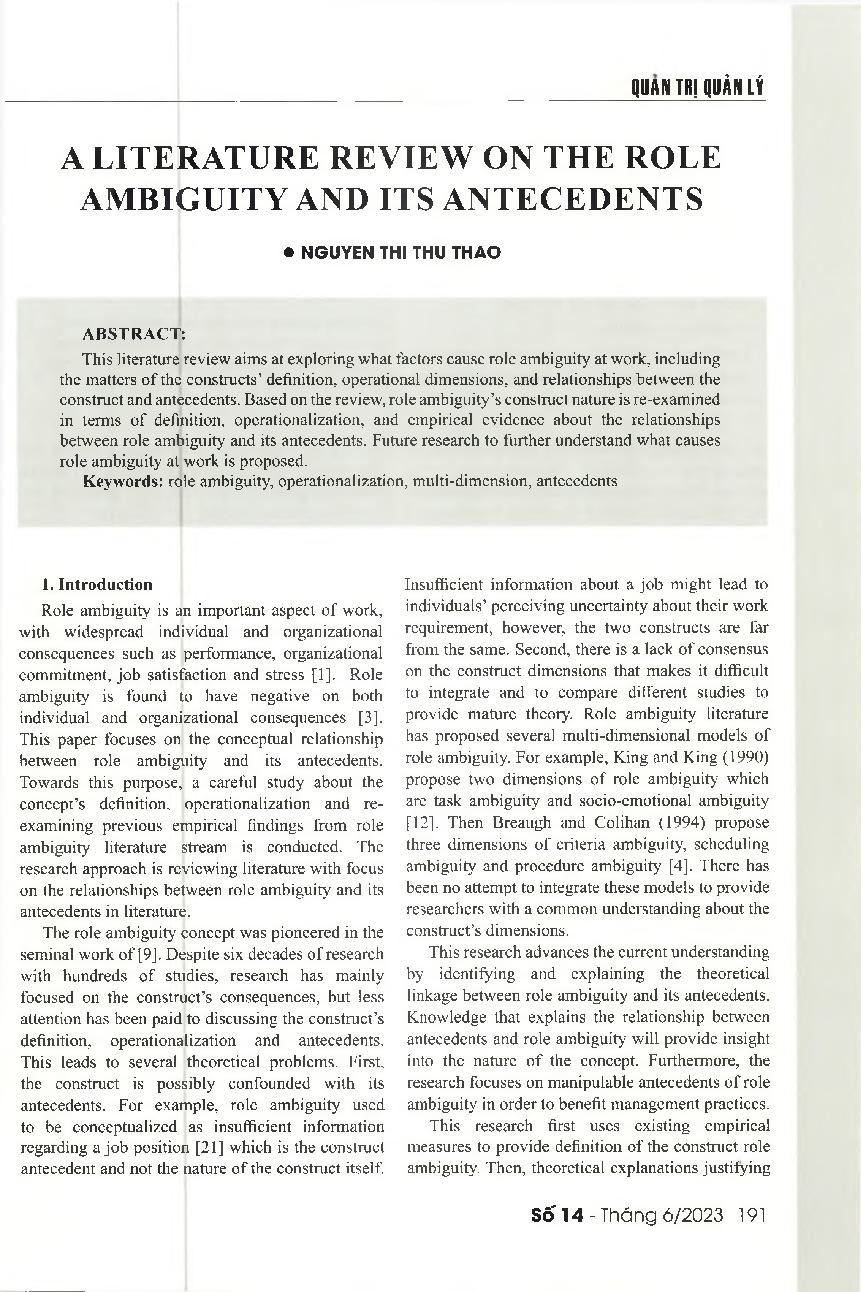 Nghiên cứu về sự mơ hồ về vai trò tại nơi làm việc và các tiền đề
