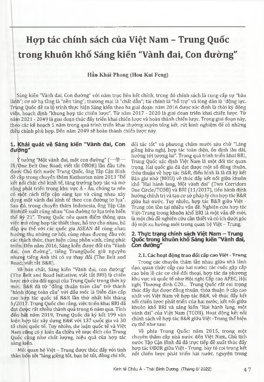 Hợp tác chính sách của Việt Nam - Trung Quốc trong khuôn khổ Sáng kiến "Vành đai, Con đường"