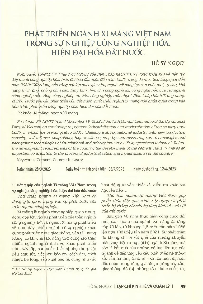 Phát triển ngành xi măng Việt Nam trong sự nghiệp công nghiệp hóa, hiện đại hóa đất nước