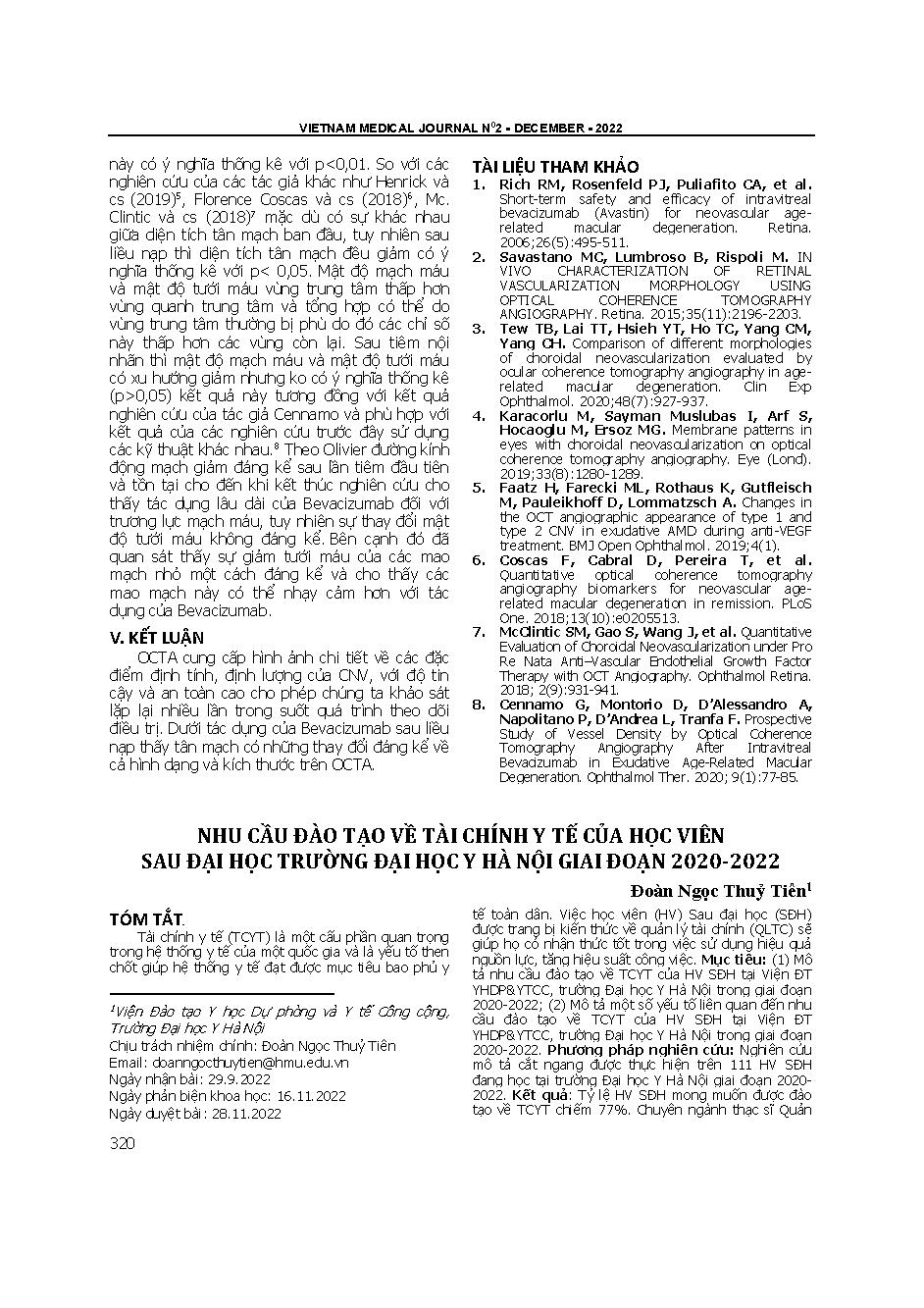 Nhu cầu đào tạo về tài chính y tế của học viên sau đại học Trường Đại học Y Hà Nội giai đoạn 2020-2022 = Training needs in health financing among postgraduates of Hanoi medical university between 2020 and 2022