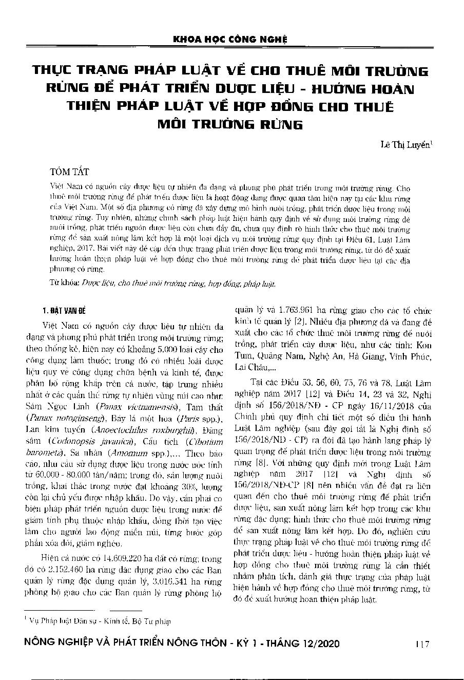 Thực trạng pháp luật về cho thuê môi trường rừng để phát triển dược liệu - hướng hoàn thiện pháp luật về hợp đồng cho thuê môi trường rừng = Current status of legislation on leasing forest environment to develop medicines - ways to finetuning legislation on contracts for leasing forest environment
