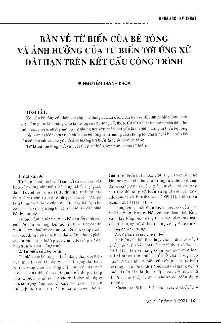 Bàn về từ biến của bê tông và ảnh hưởng của từ biến tới ứng xử dài hạn trên kết cấu công trình