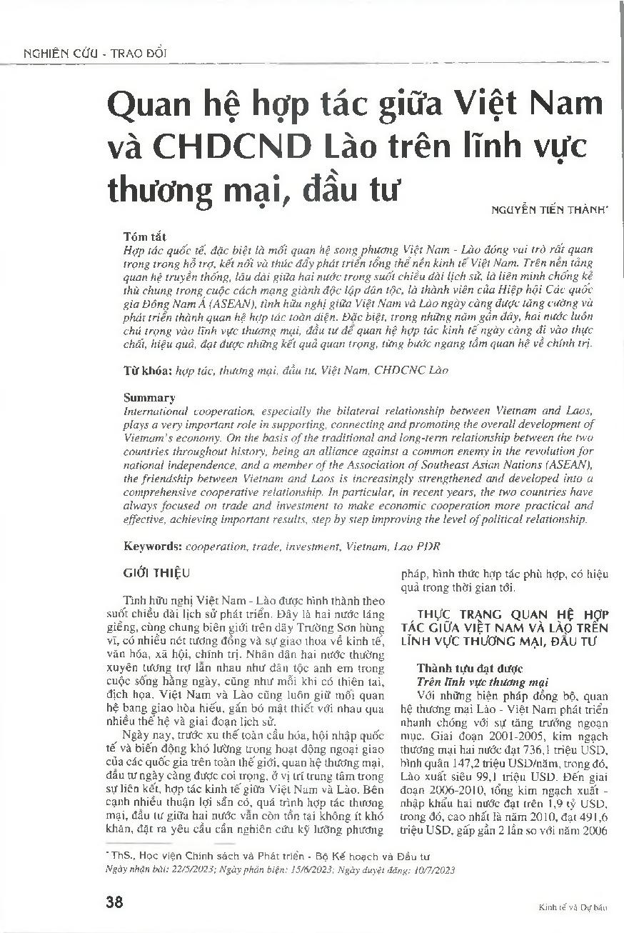 Quan hệ hợp tác giữa Việt Nam và CHDCND Lào trên lĩnh vực thương mại, đầu tư