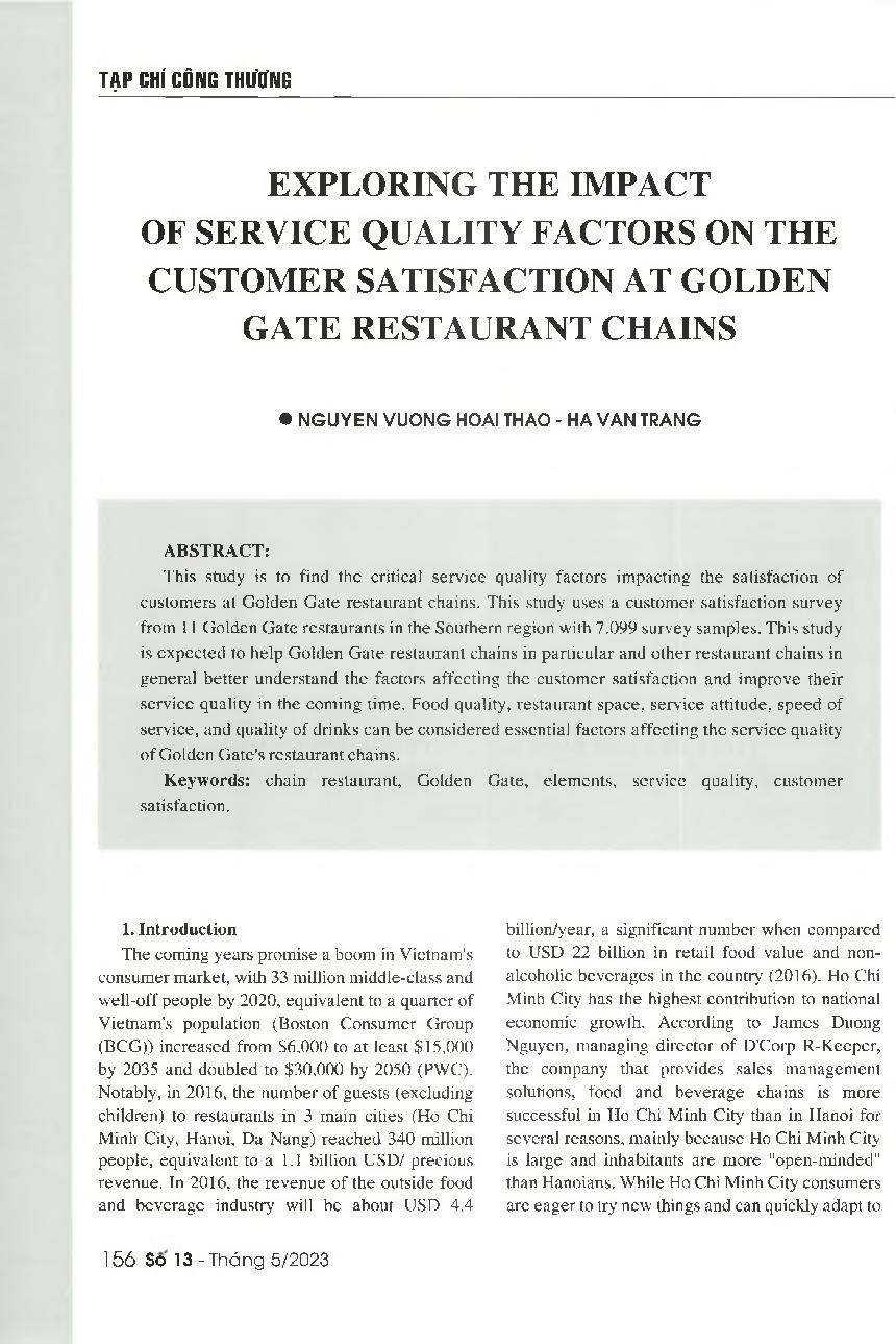 Nghiên cứu sự tác động của các yếu tố chất chất lượng dịch vụ đến sự hài lòng của khách hàng tại các chuỗi nhà hàng thuộc công ty Golden Gate
