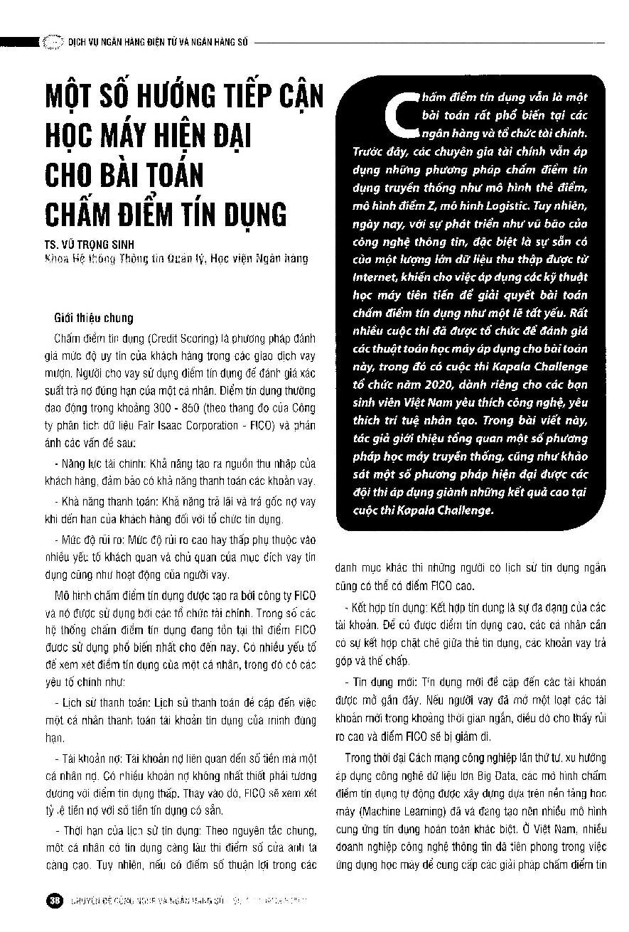 Một số hướng tiếp cận học máy hiện đại cho bài toán chấm điểm tín dụng