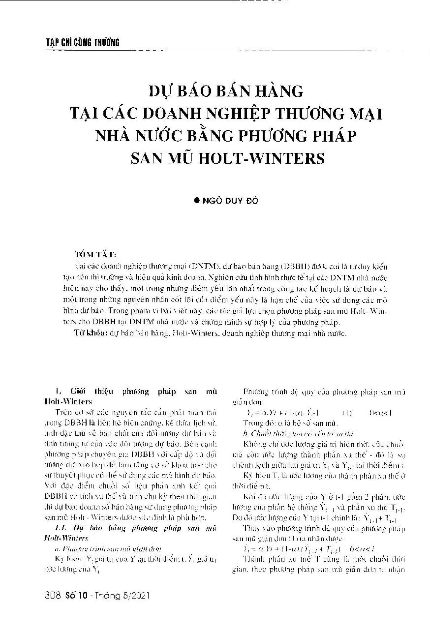 Dự báo bán hàng tại các doanh nghiệp thương mại nhà nước bằng phương pháp san mũ Holt-Winters