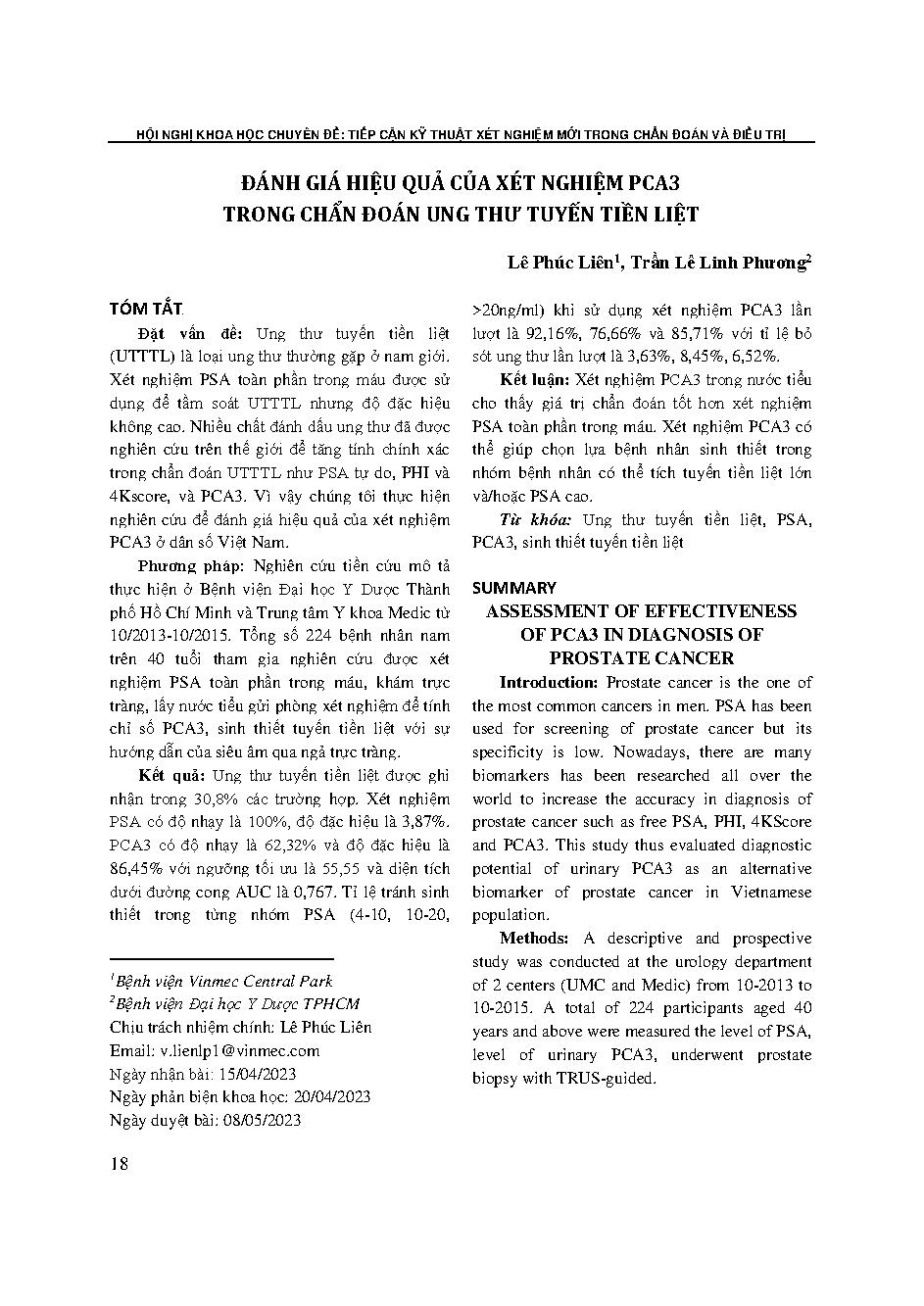 Đánh giá hiệu quả của xét nghiệm pca3 trong chẩn đoán ung thư tuyến tiền liệt