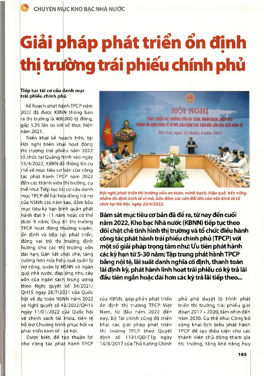 Giải pháp phát triển ổn định thị trường trái phiếu chính phủ = Solutions for stable development of the government bond market