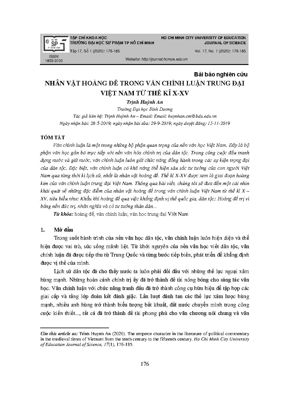 NHÂN VẬT HÒANG ĐẾ TRONG VĂN CHÍNH LUẬN TRUNG ĐẠI VIỆT NAM TỪ THẾ KỈ X-XV = THE EMPEROR CHARACTER IN THE LITERARURE OF POLITICAL COMMENTARY IN THE MEDIEVAL TIMES OF VIETNAM FROM THE TENTH CENTURY TO THE FIFTEENTH CENTURY
