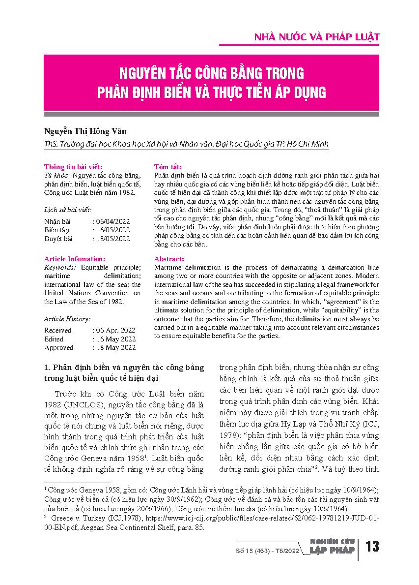 Nguyên tắc công bằng trong phân định biển và thực tiễn áp dụng = Equitable Principle in Maritime Delimitation and Practical Application