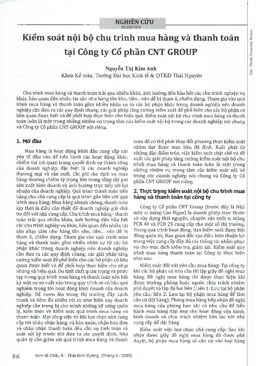 Kiểm soát nội bộ chu trình mua hàng và thanh toán tại Công ty cổ phần CNT GROUP
