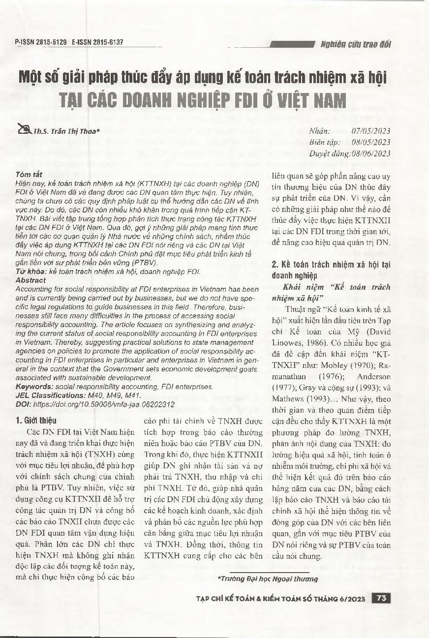 Một số giải pháp thúc đẩy tại các doanh nghiệp FDI áp dụng kế toán trách nhiệm xã hội tại các doanh nghiệp FDI ở Việt Nam
