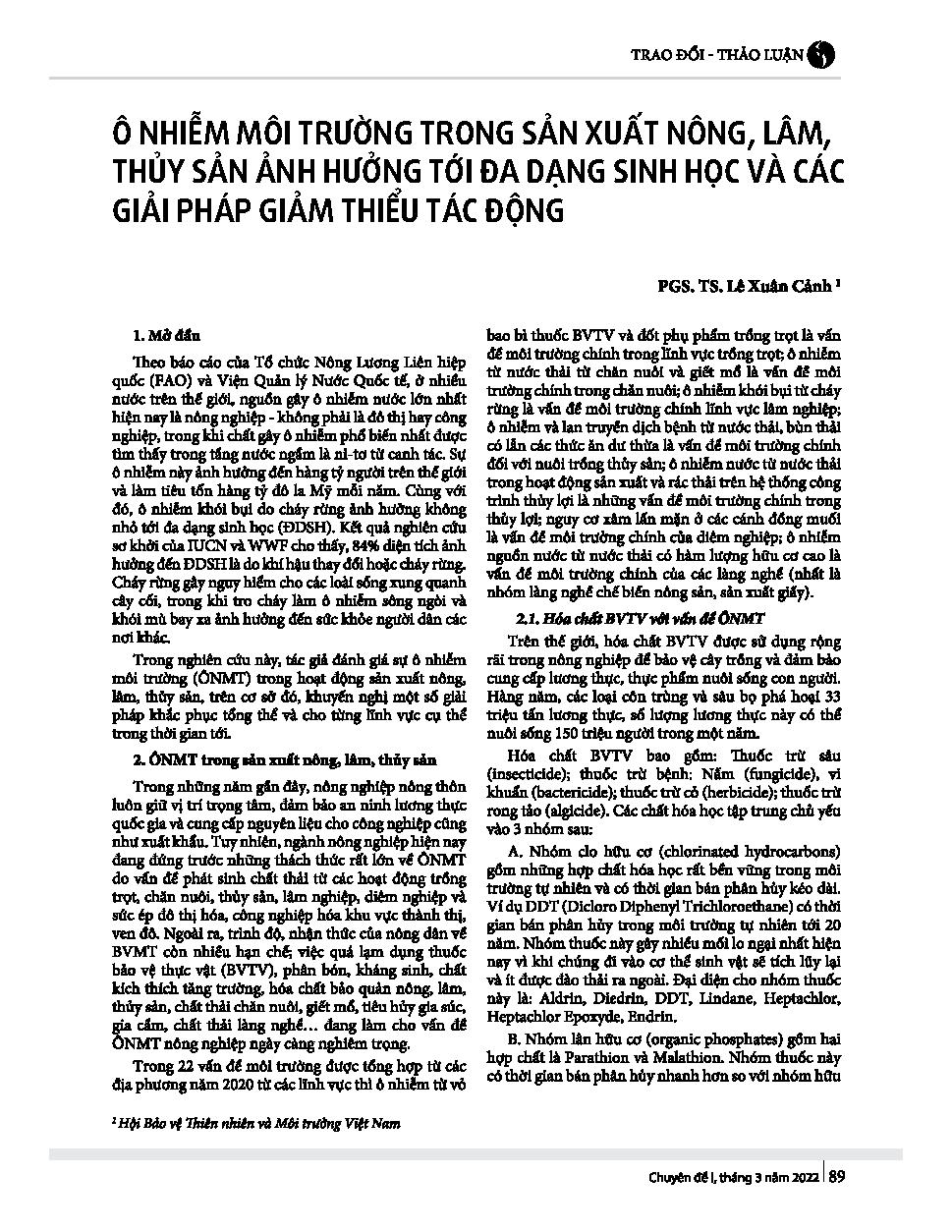 Ô nhiễm môi trường trong sản xuất nông, lâm, thủy sản ảnh hưởng tới đa dạng sinh học và các giải pháp giảm thiểu tác động