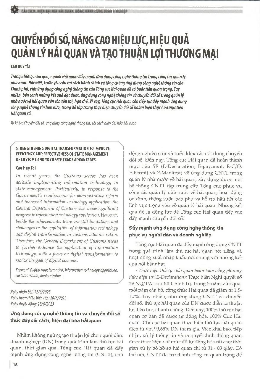Chuyển đổi số, nâng cao hiệu lực, hiệu quả quản lý hải quan và tạo thuận lợi thương mại