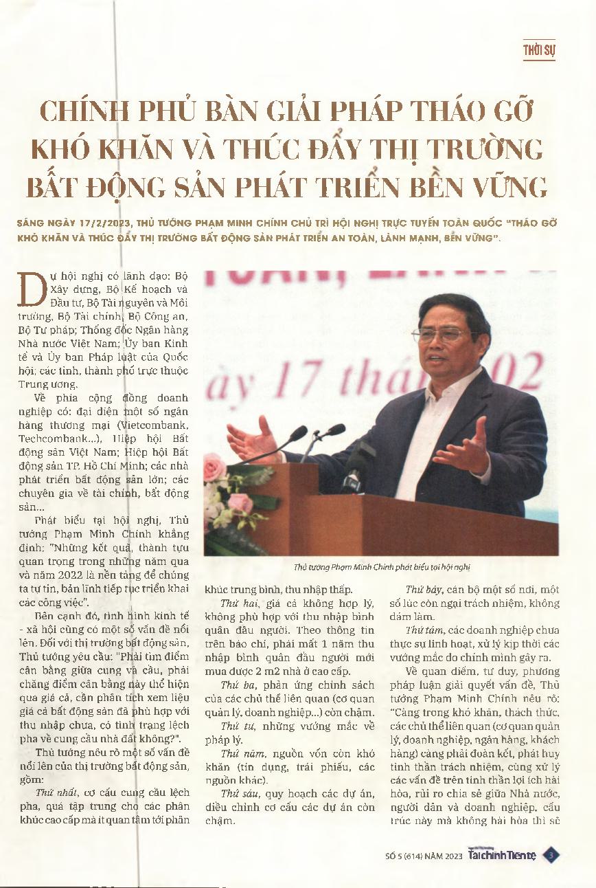 Chính phủ bàn giải pháp tháo gỡ khó khăn và thúc đẩy thị trường bất động sản phát triển bền vững = The Government sought ways to remove obstacles to the sustainable development of the domestic real estate market