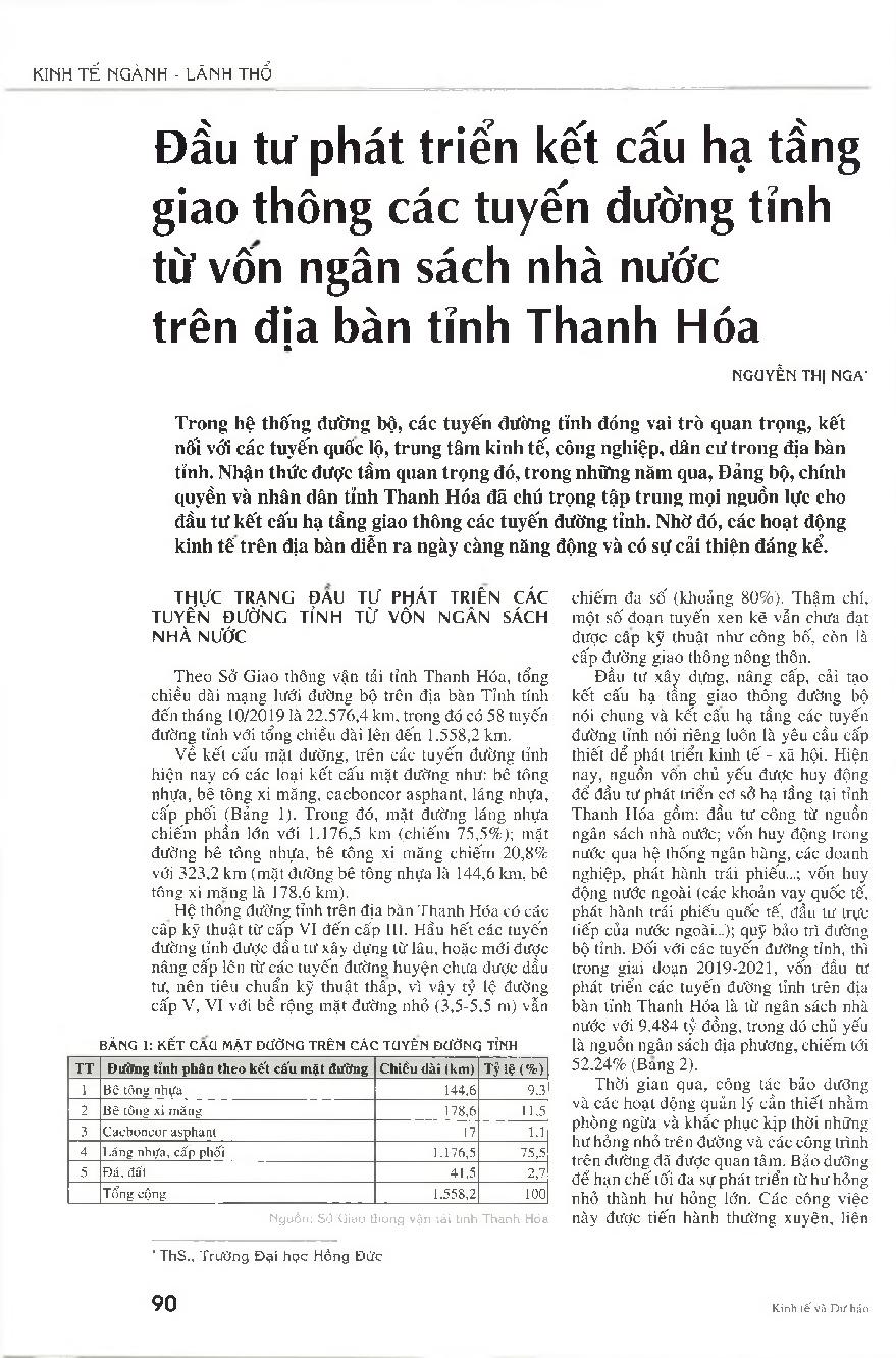 Đầu tư phát triển kết cấu hạ tầng giao thông các tuyến đường tỉnh từ vốn ngân sách nhà nước trên địa bàn tỉnh Thanh Hóa
