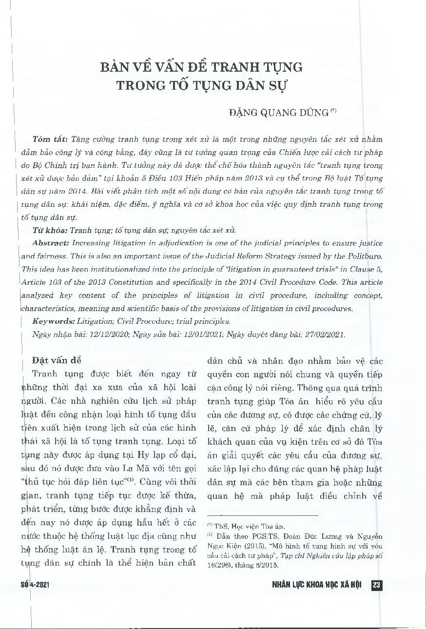 Bàn về vấn đề tranh tụng trong tố tụng dân sự = Discussing litigation in civil proceedings