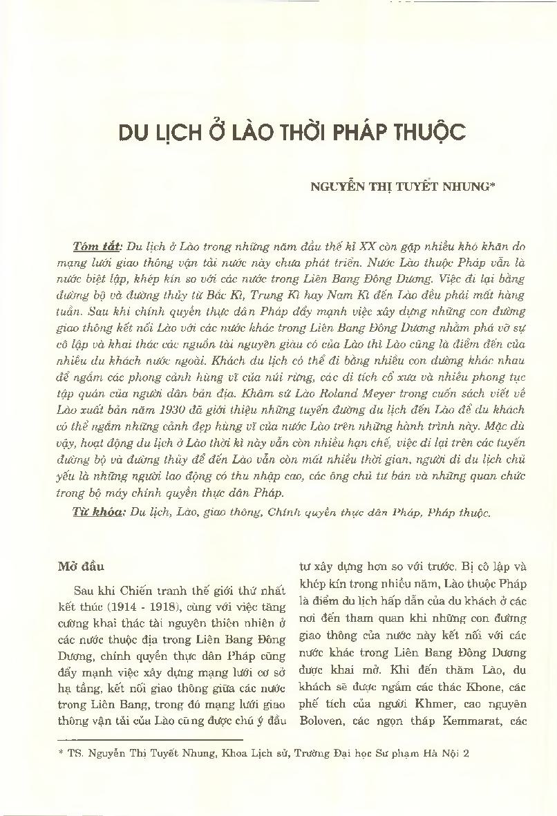 Du lịch ở Lào thời Pháp thuộc = Tourism in Laos under the French Colonial Period