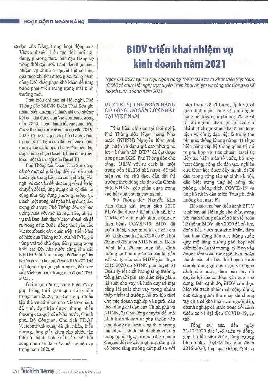 BIDV triển khai nhiệm vụ kinh doanh năm 2021