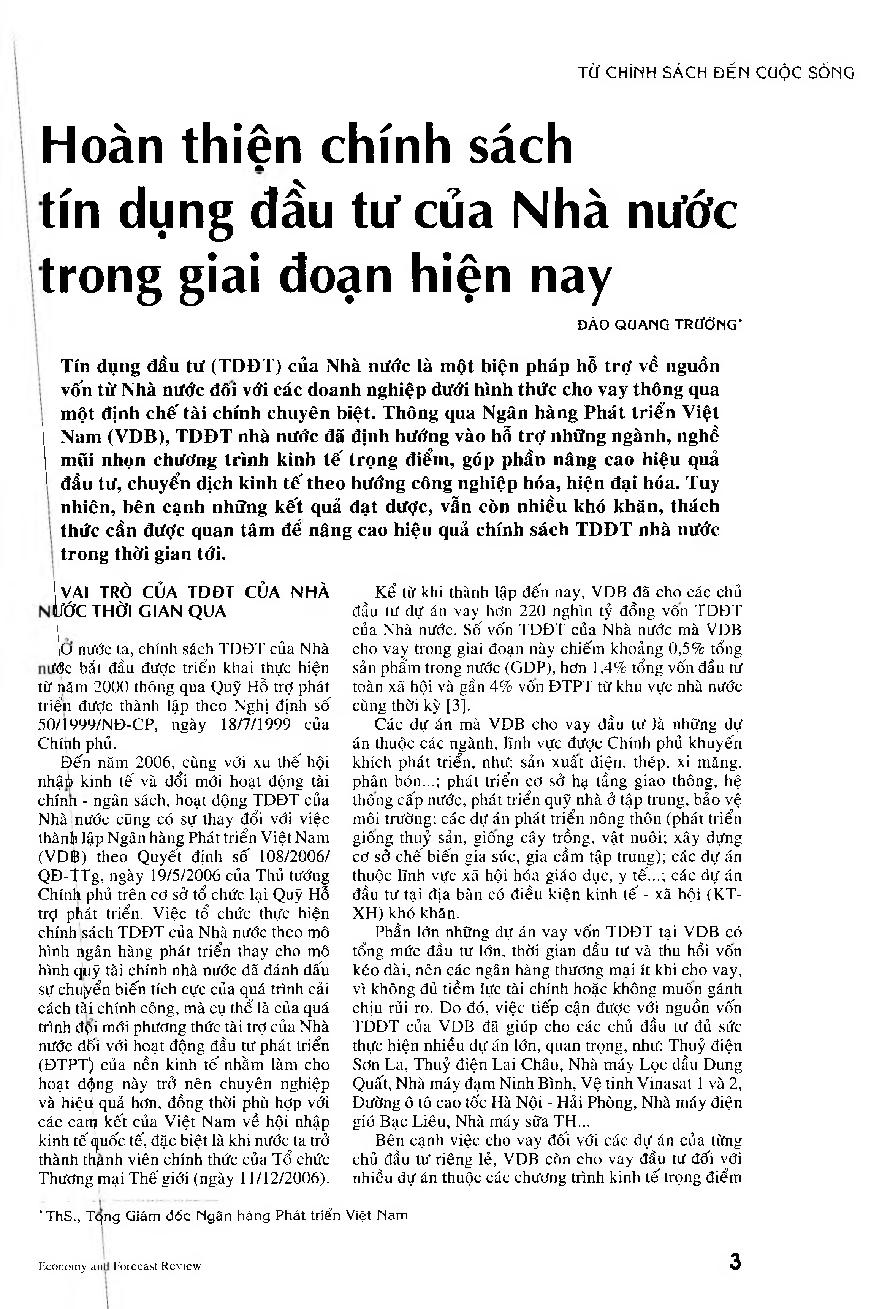 Hoàn thiện chính sách tín dụng đầu tư của Nhà nước trong giai đoạn hiện nay