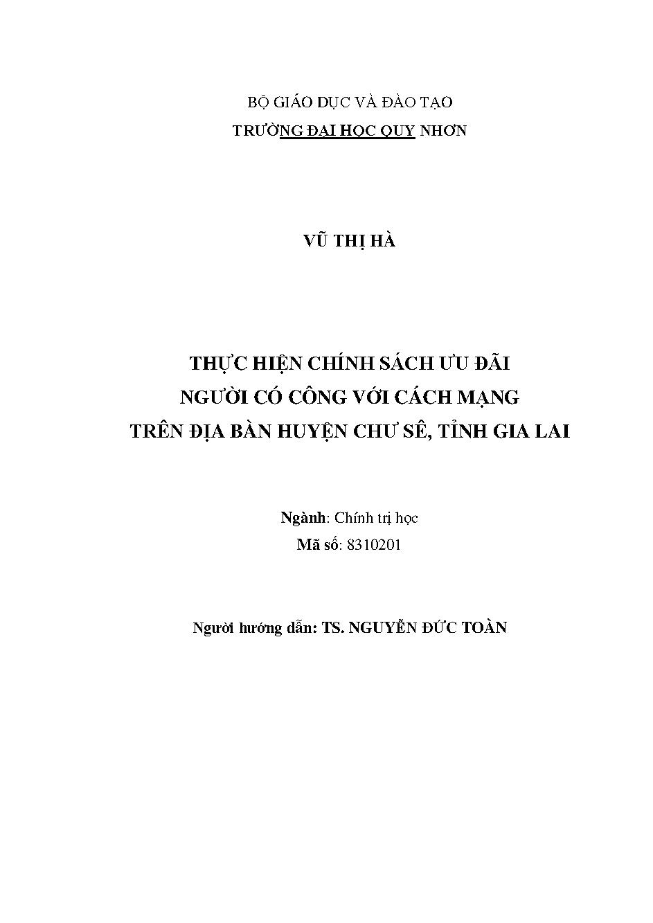 Thực hiện chính sách ưu đãi người có công với cách mạng trên địa bàn huyện Chư Sê, tỉnh Gia Lai